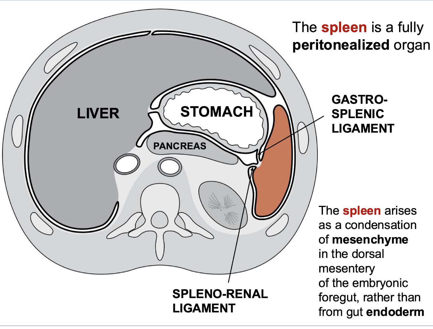 GASTRO-SPLENIC LIGAMENT; SPLENO-RENAL ligament.