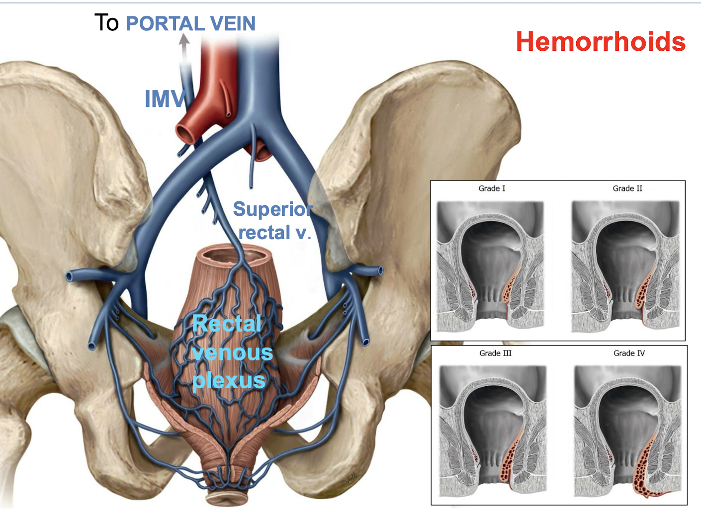 What condition involves the rectal venous plexus due to porto-caval anastomosis