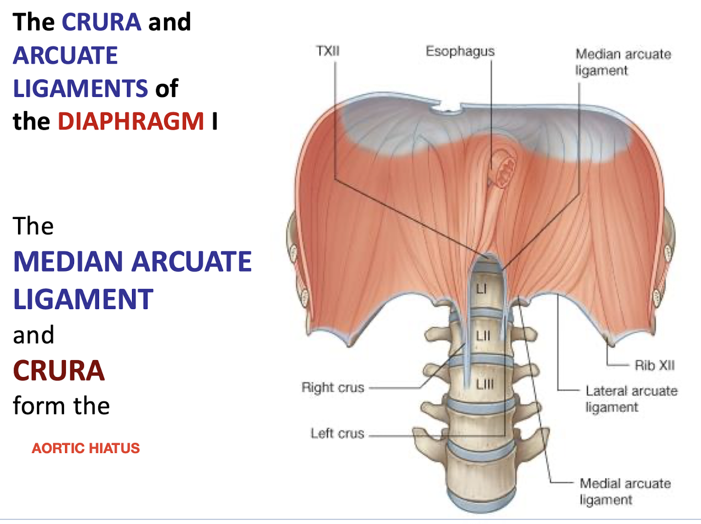 Begins at the aortic hiatus (formed by median arcuate ligament and crura of diaphragm).