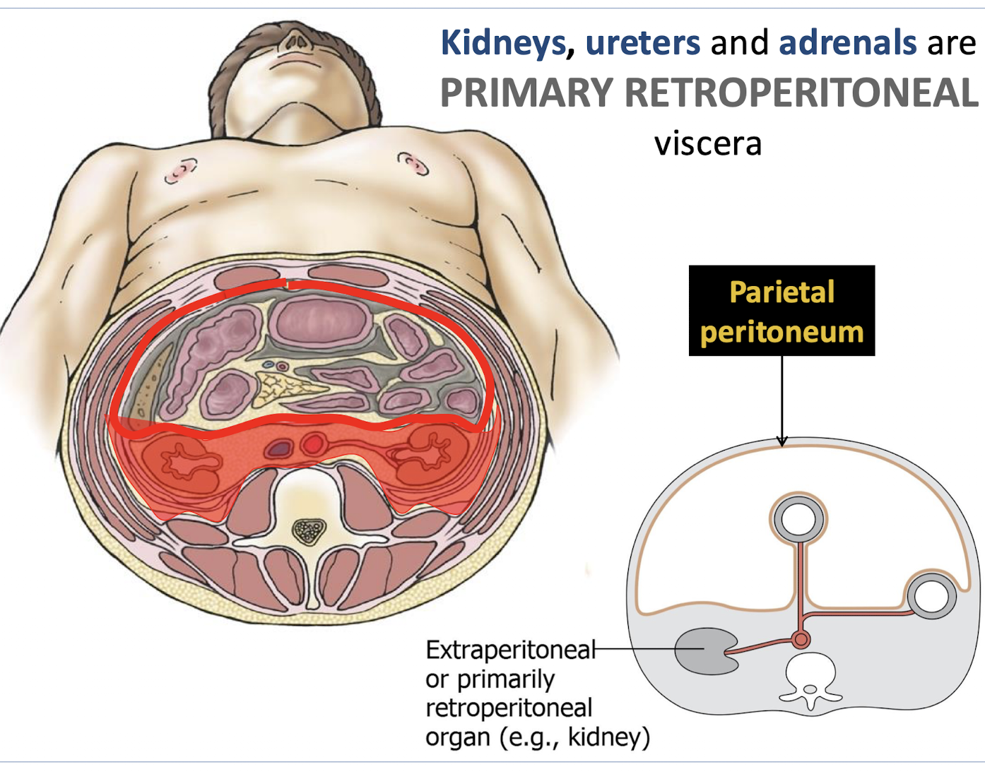 Which organs are classified as PRIMARY RETROPERITONEAL viscera