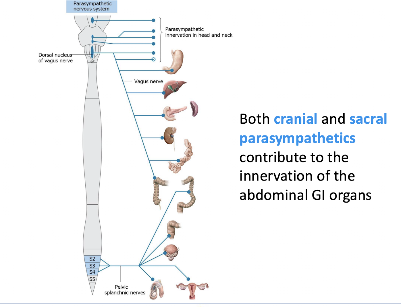 What two sources contribute parasympathetic innervation to the abdominal GI organs