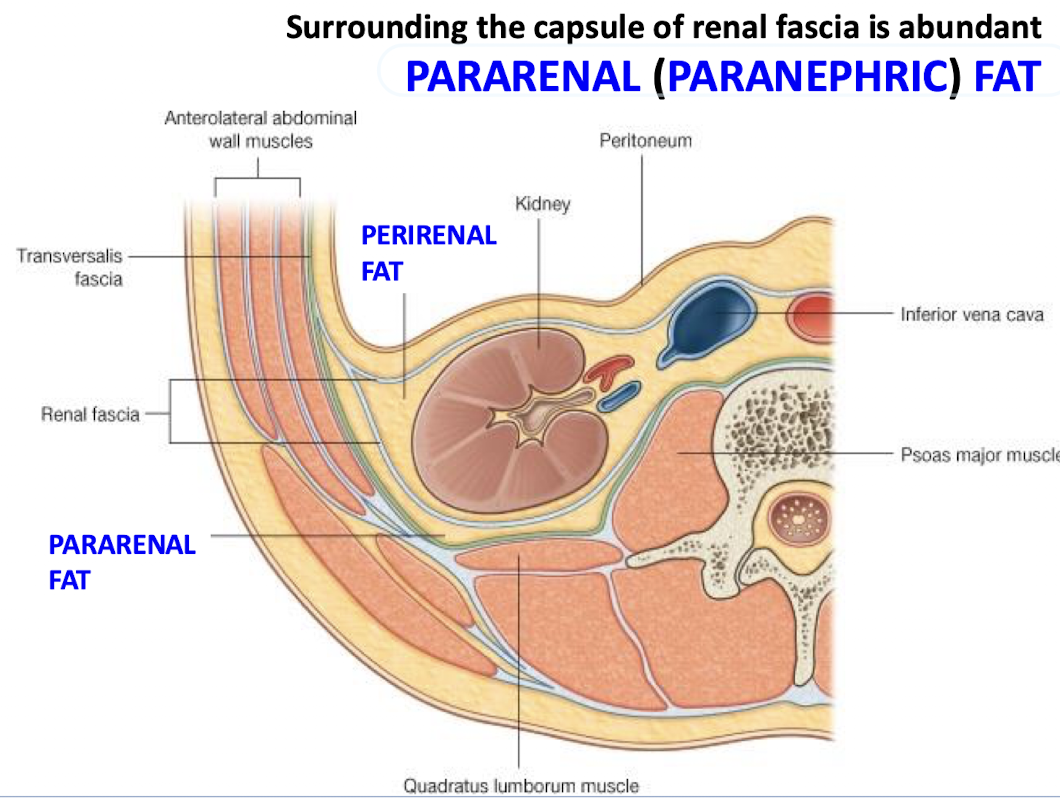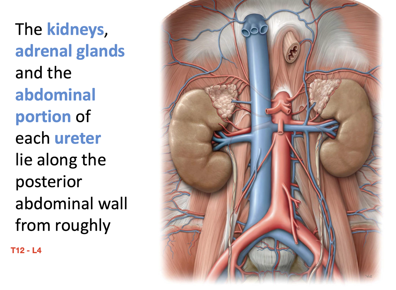 The kidneys; adrenal glands; and the abdominal portion of each ureter.