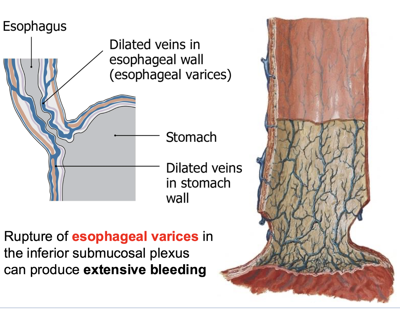 What severe complication can result from the rupture of esophageal varices in the inferior submucosal plexus