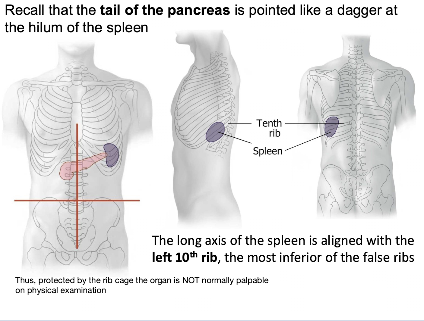 Thus, protected by the rib cage the organ is NOT normally palpable on physical examination