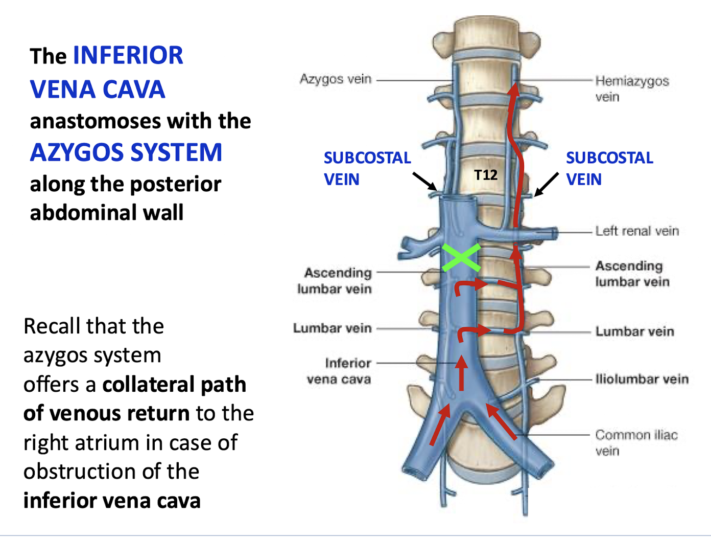 It offers a collateral path of venous return to the right atrium in case of obstruction of the inferior vena cava.