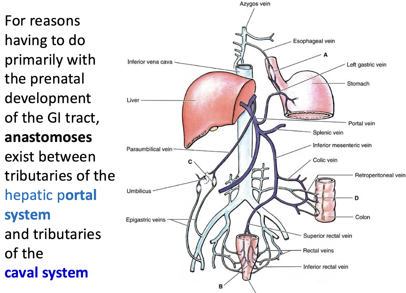 Why do anastomoses exist between tributaries of the hepatic portal system and the caval system
