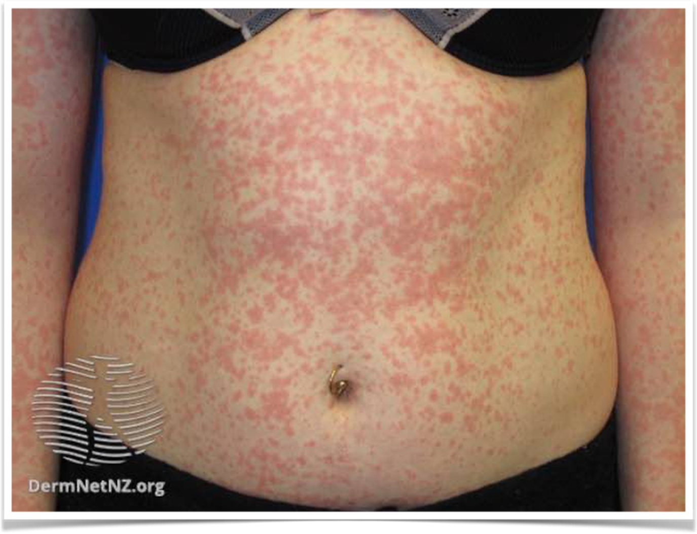Maculopathic rash -Benign T-cell drug reaction, antihistamine/ topical steroids