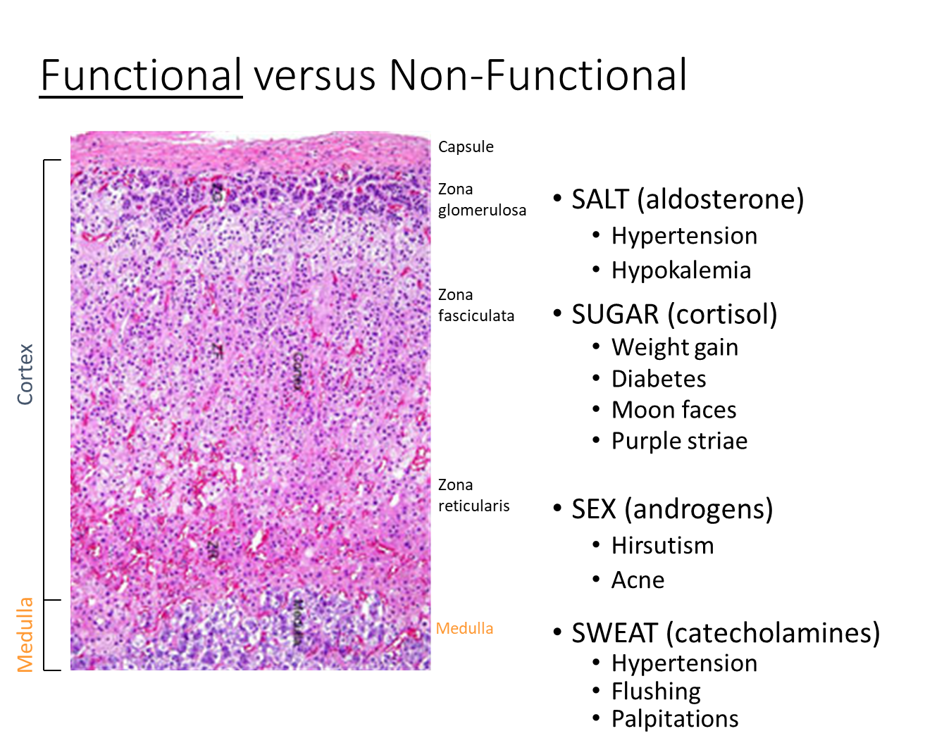 Many patients will have adrenal incidentalomas which are unexpected, asymptomatic masses that are larger than 1 cm and are found incidentally through imaging
