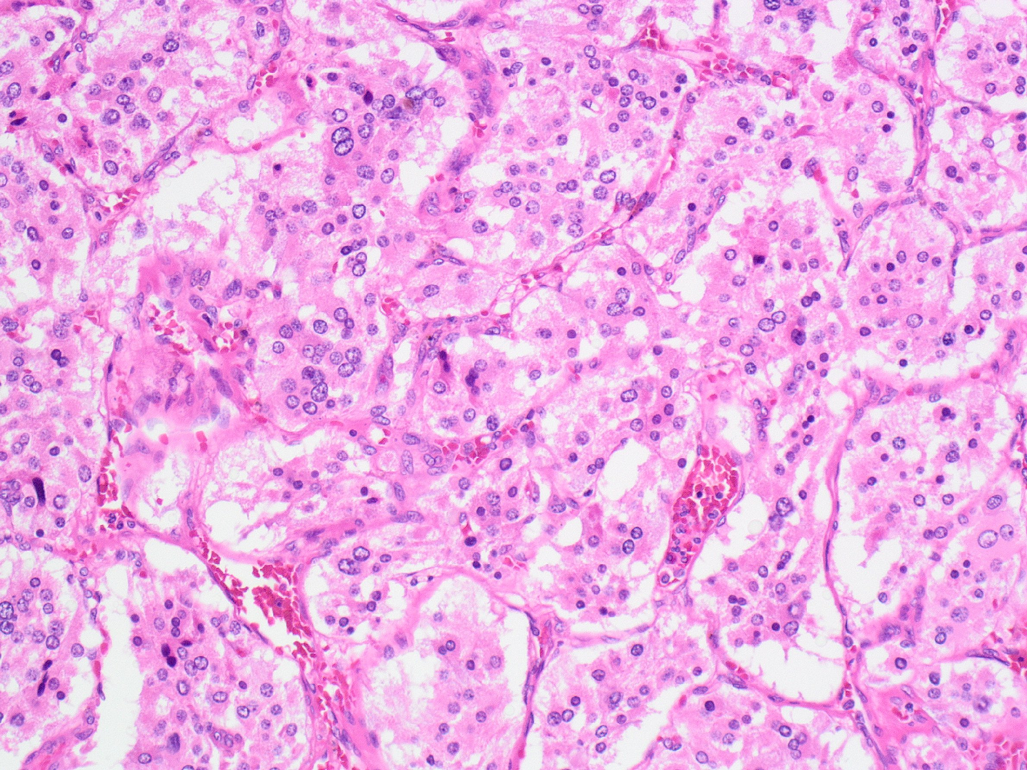 → tumor cells arranged in a nested/zellballen architecture and separated by stroma