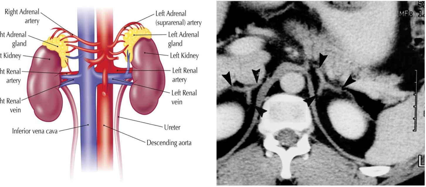 2) These glands are then drained by the adrenal veins which have different drainages depending on which side it is on: