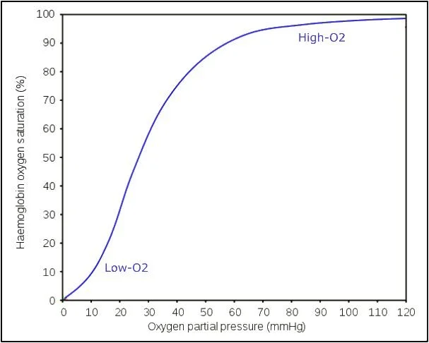 shows relationship between oxygen tension in surrounding environment and oxygen saturation in haemoglobin