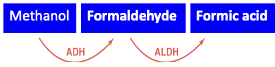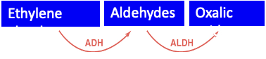 Ethanol —ADH→Acetaldehyde —ALDH→ Acetic Acid
