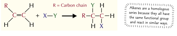 alkenes mostly react via Addition reactions