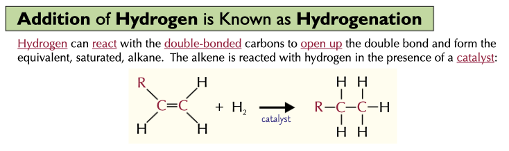 Addition of hydrogen to an alkene is known as