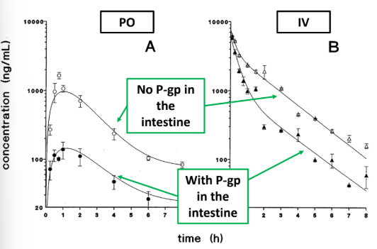 PO: P-gp reduces paclitaxel conc, by limiting uptake through intestine