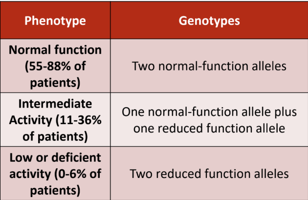 c. 2 decreased function alleles (2/3) (2/2) (3/3)