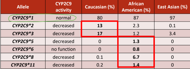 Which CYP2C9 allele is common in African descent?