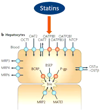 Decreased transport of statins —> increased side effect risk —> myopathy
