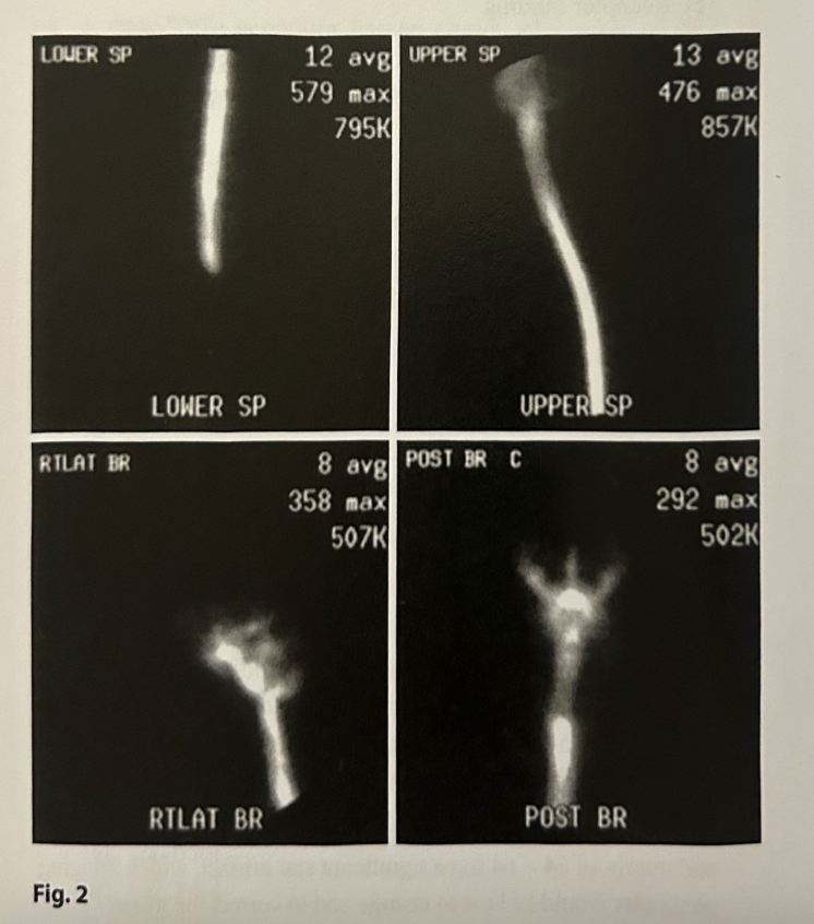 The images in Fig. 2 were taken 2h following the intrathecal injection of a radiopharmaceutical. These are images from a: