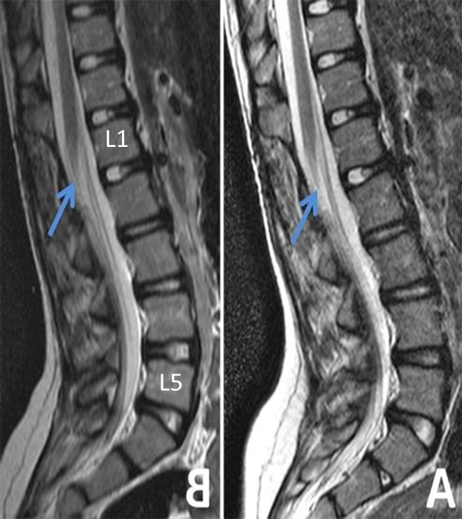 pia mater that attached to the cord tethered to the sacrum (coccyx)