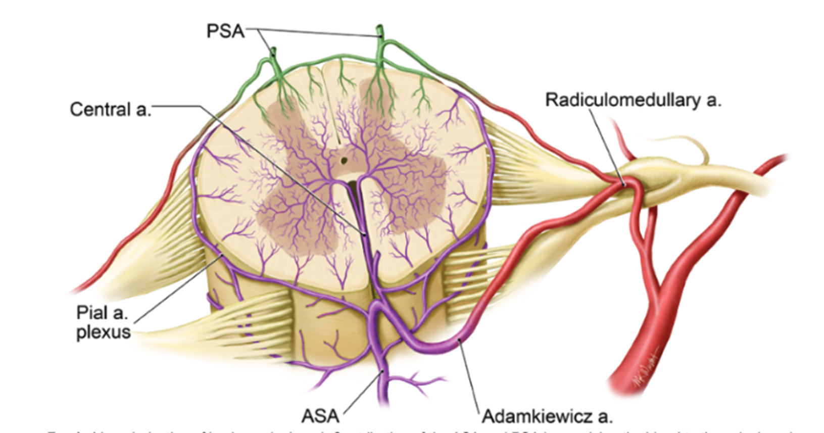Important during surgery, trauma, cancer because injury could result in anterior cord stroke.