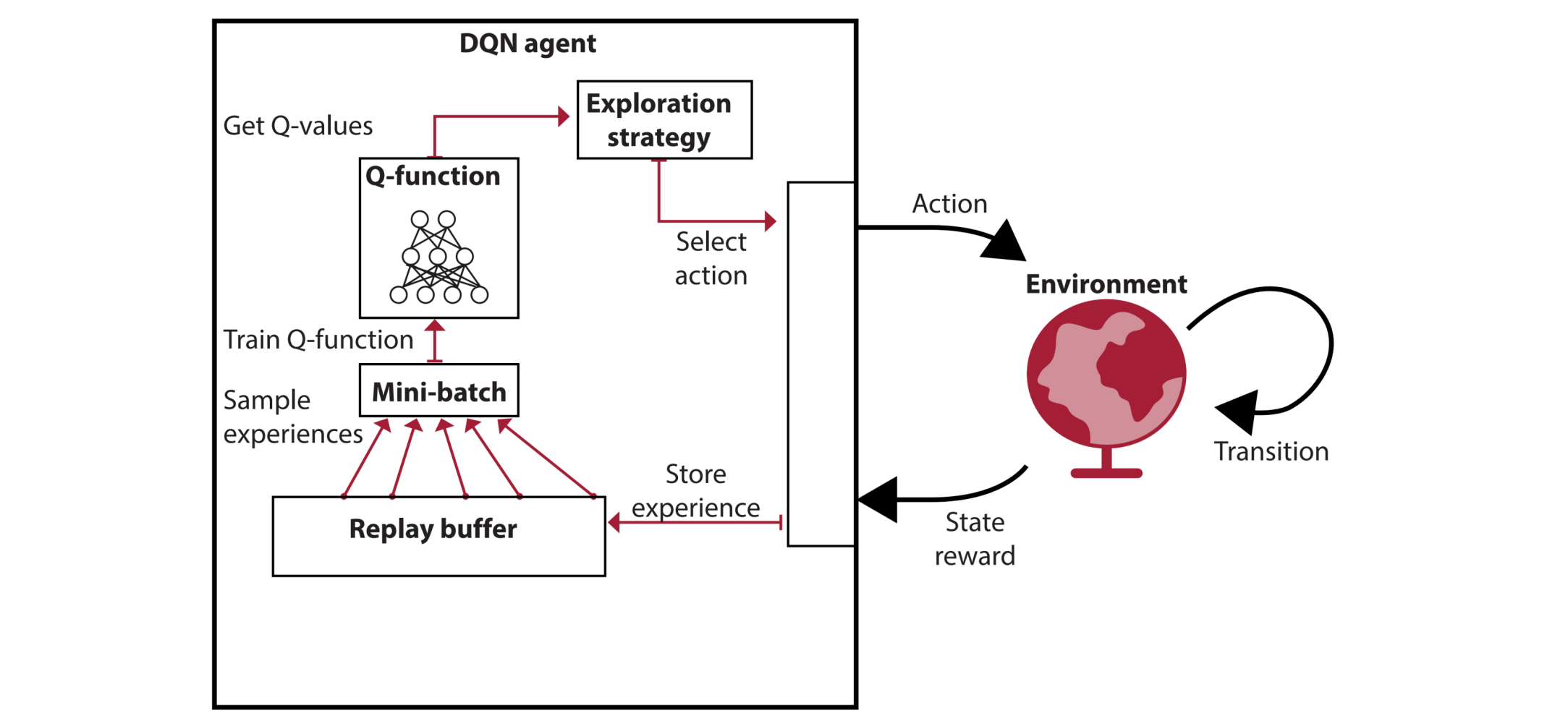 DQN is een off-policy algoritme, wat betekent dat het leert van ervaringen in een replay buffer die zijn gegenereerd door een (oudere) policy. Dit zorgt voor een wiskundig probleem bij n-step updates: