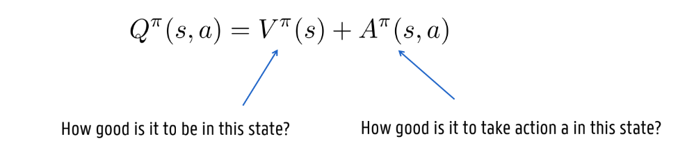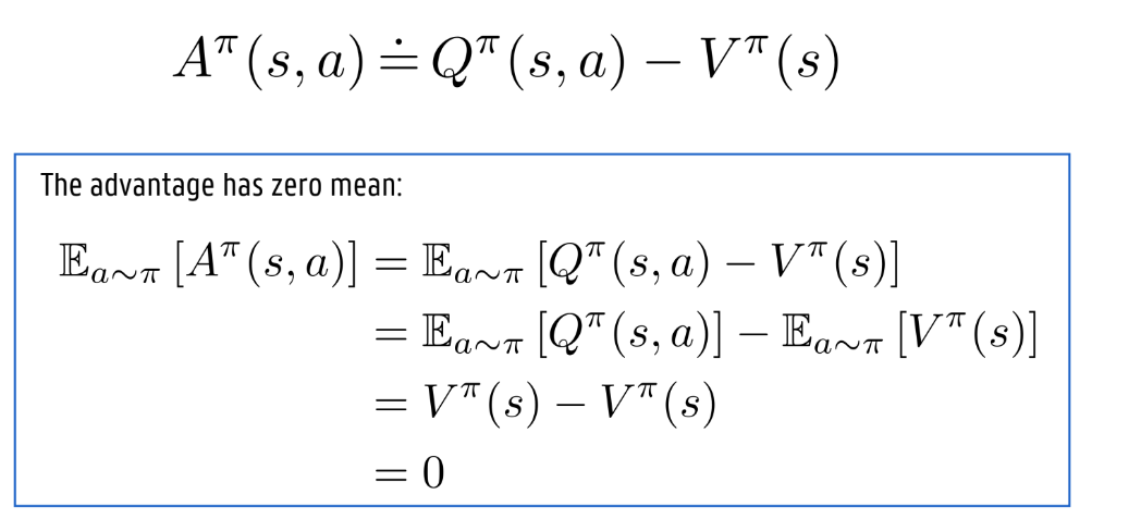 Advantage functie A(s,a): Wat is de relatieve meerwaarde (het voordeel) van het kiezen van actie a ten opzichte van andere acties in die specieke toestand s?,.