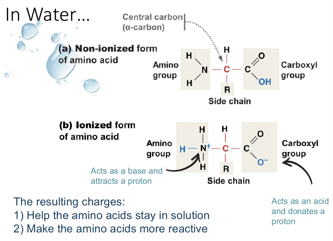 r-group orientation: side chains extend out and can interact with each other or water