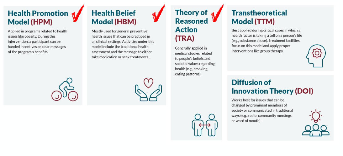Health promotion models encourage people / populations to make healthy choices and motivating them to be consistent with their intentions based on