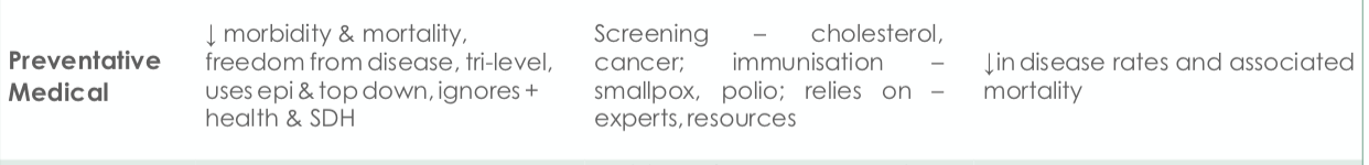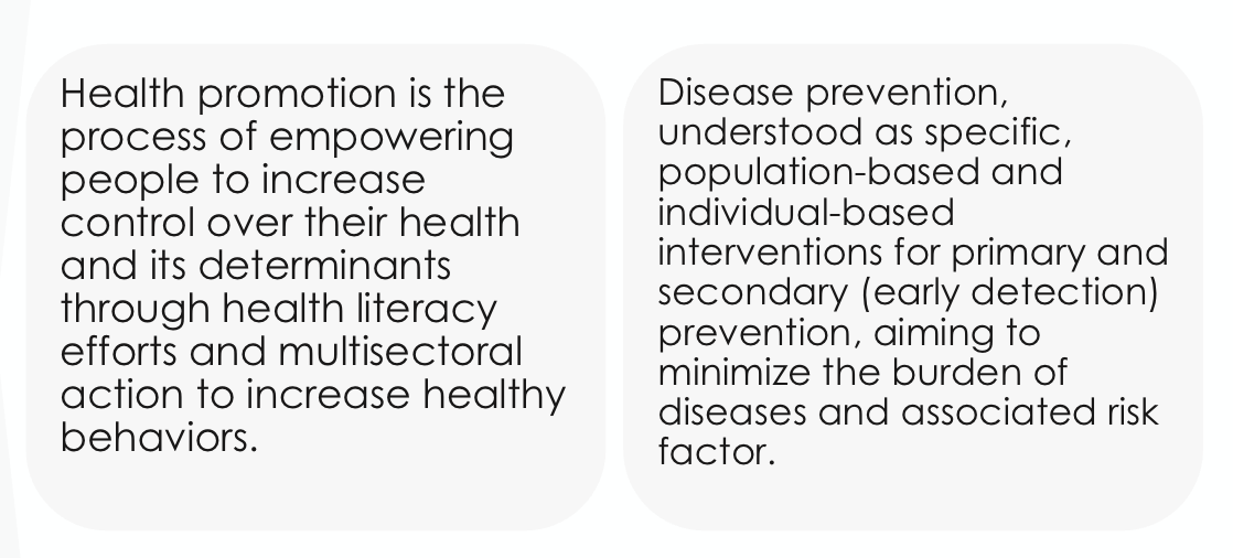 describes measures to reduce the occurrence of risk factors, prevent the occurrence of disease, to arrest its progress and reduce its consequences once established.