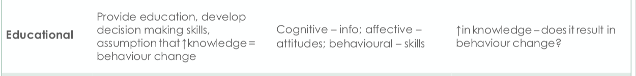 identifies multiple levels of intervention and helps providers move beyond the perception that prevention is JUST EDUCATION
