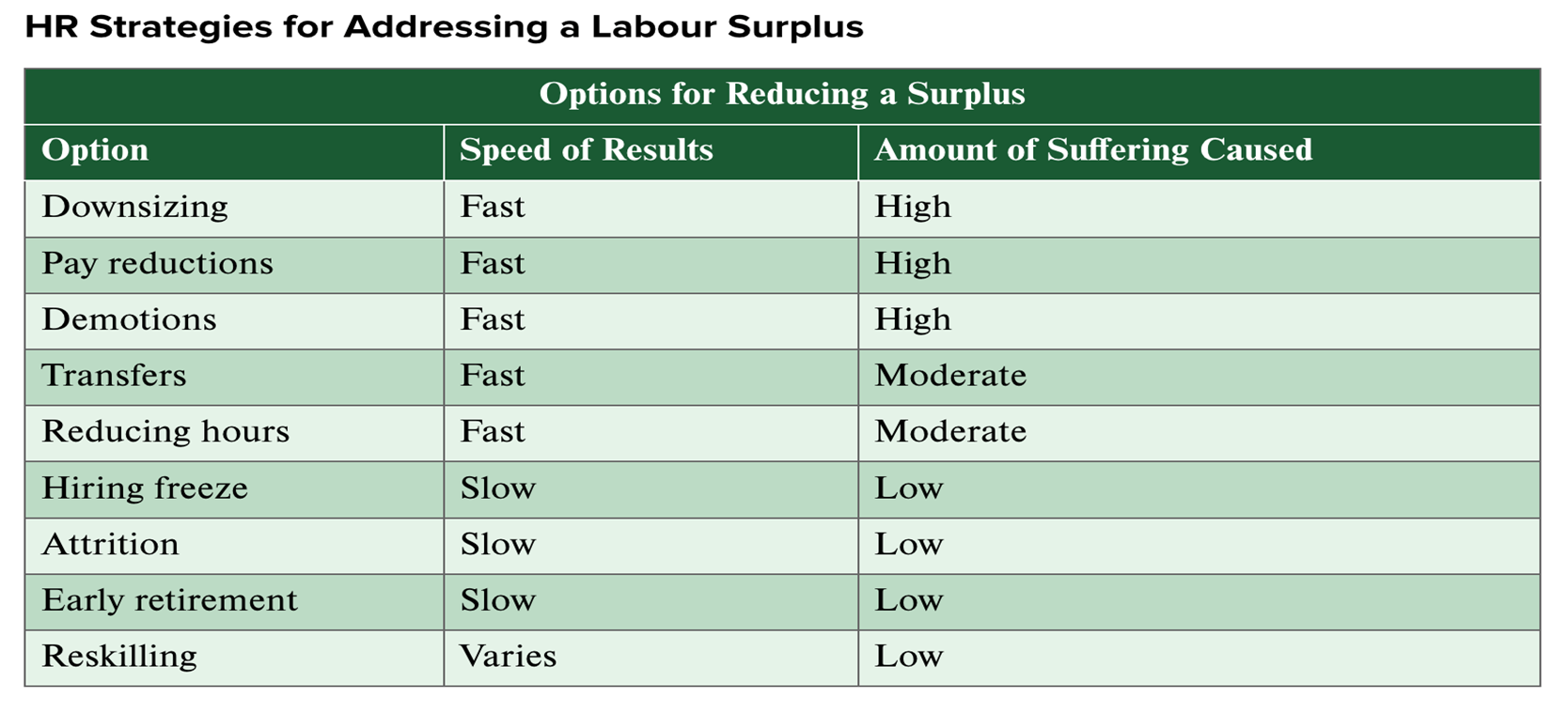 Strategies for addressing labour suplus