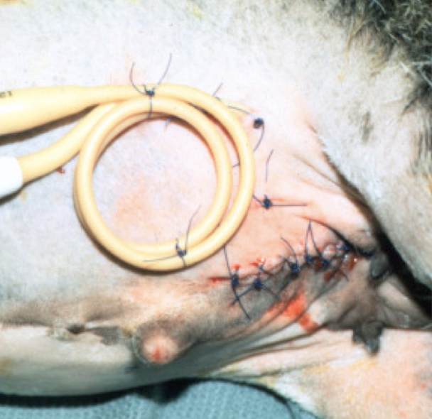 Provides temporary urine exit (heals by 2nd intention)