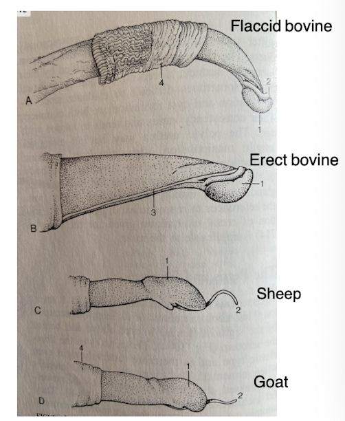 Bovine penis shows differences when flaccid vs erect.