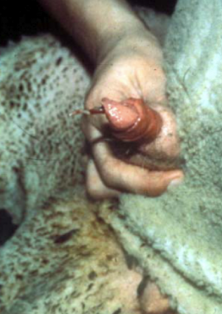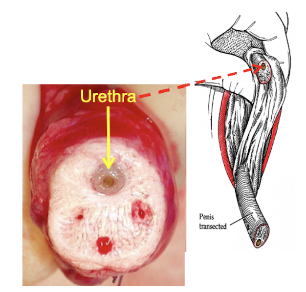 Urethral process in sheep/goats (very narrow)
