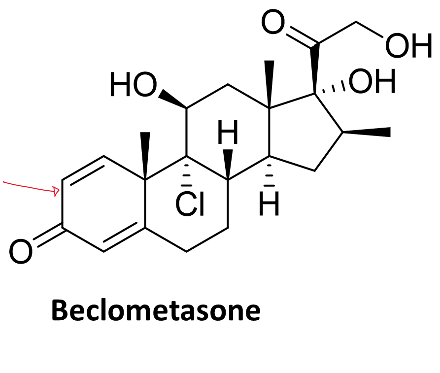 beclomethasone contains 2 double bonds in the ring, while hydrocortisone only contains 1 double bond
