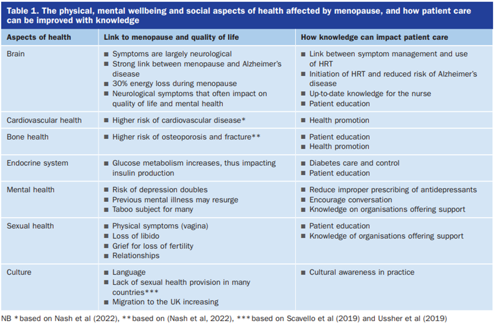 Describe the aspects of menopause and how patient care can be improved with knowledge
