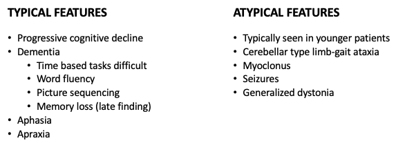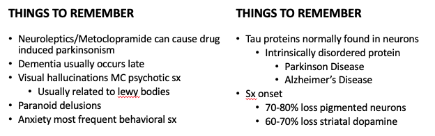 Absence of Lewy bodies —> Parkinsonism