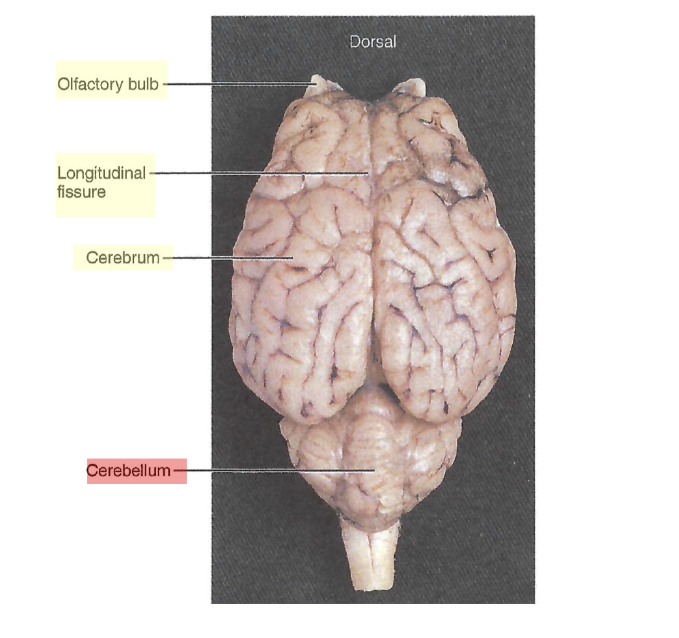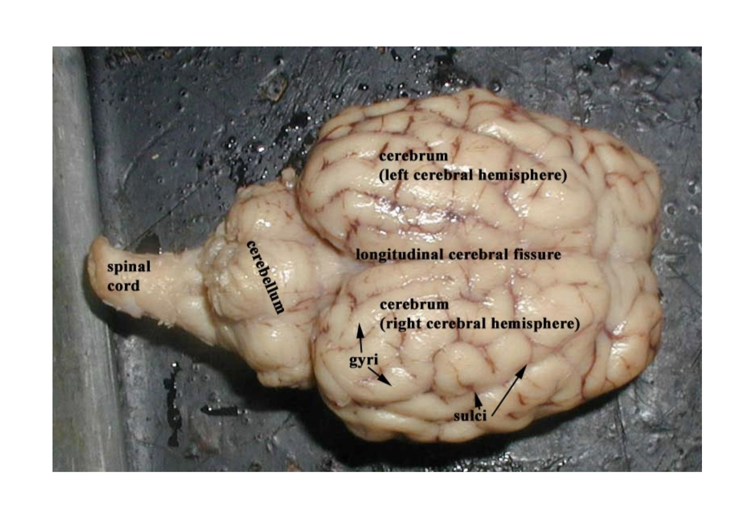Largest brain region, two cerebral hemispheres (left and right), 5 lobes—4 visible externally