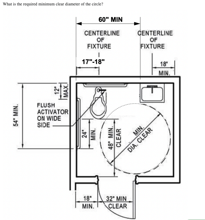 b. There is no minimum as long as a wheelchair can turn around in the bathroom