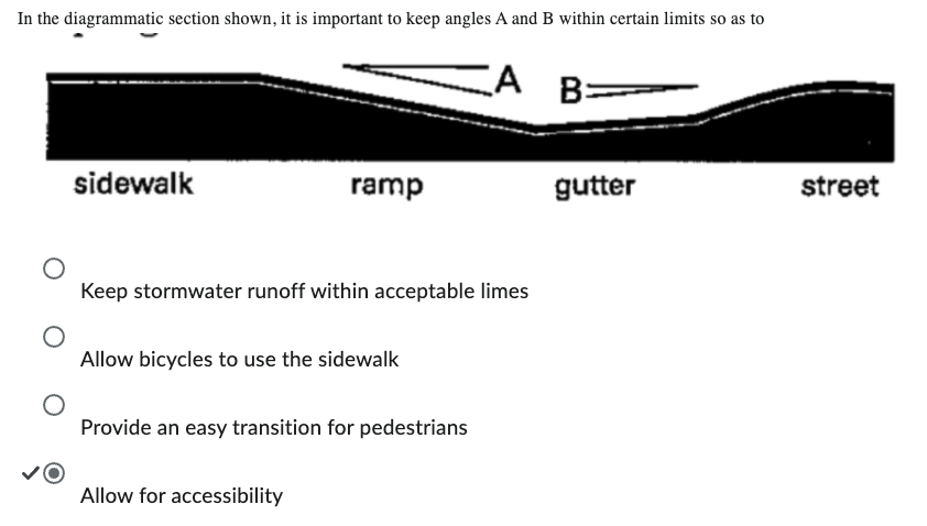 c. walks, sidewalks, curb ramps, parking access aisles and elevators/lifts