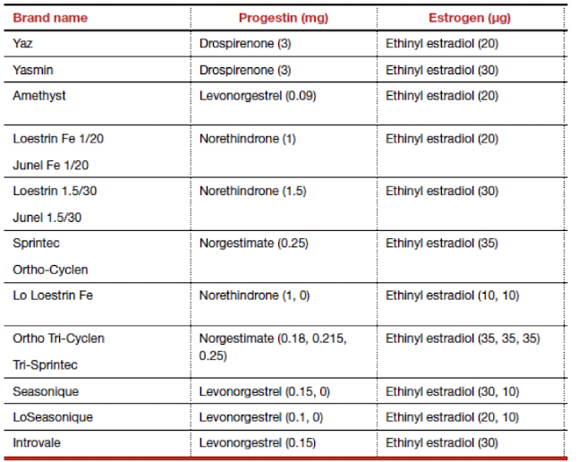 Dosing: 28 day cycles (monophasic, biphasic, triphasic, quadriphasic regimens), extended and continuous cycles possible with monophasic only (to skip periods)