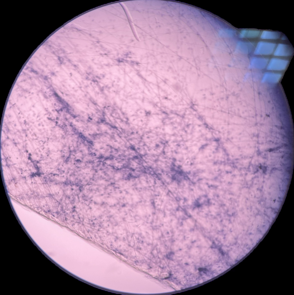 Elastic cartilage from the epiglottis (Carmine-resorcin-fuchsin), elastic fibers, chondrocytes