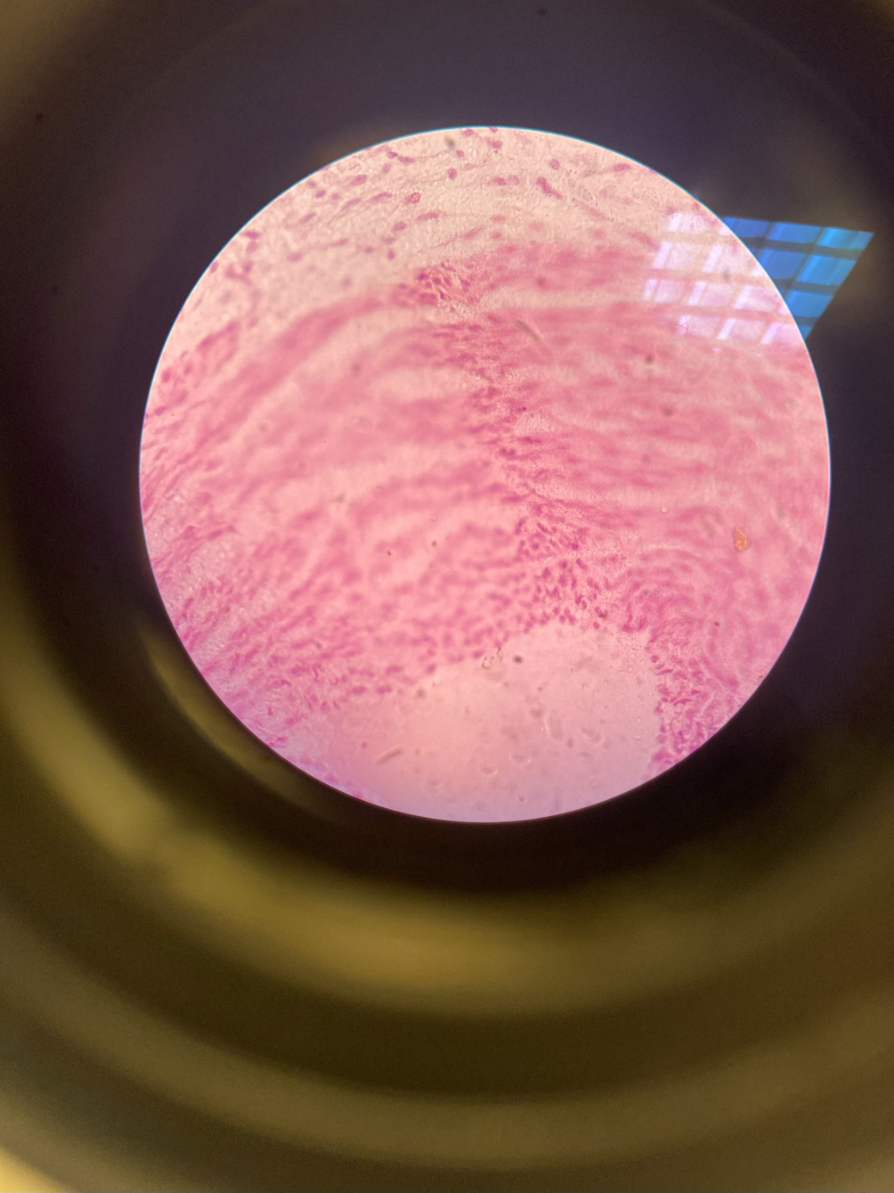 Fibrocartilage from the disk of knee joint (H&E), collogen fiers, condrocytes