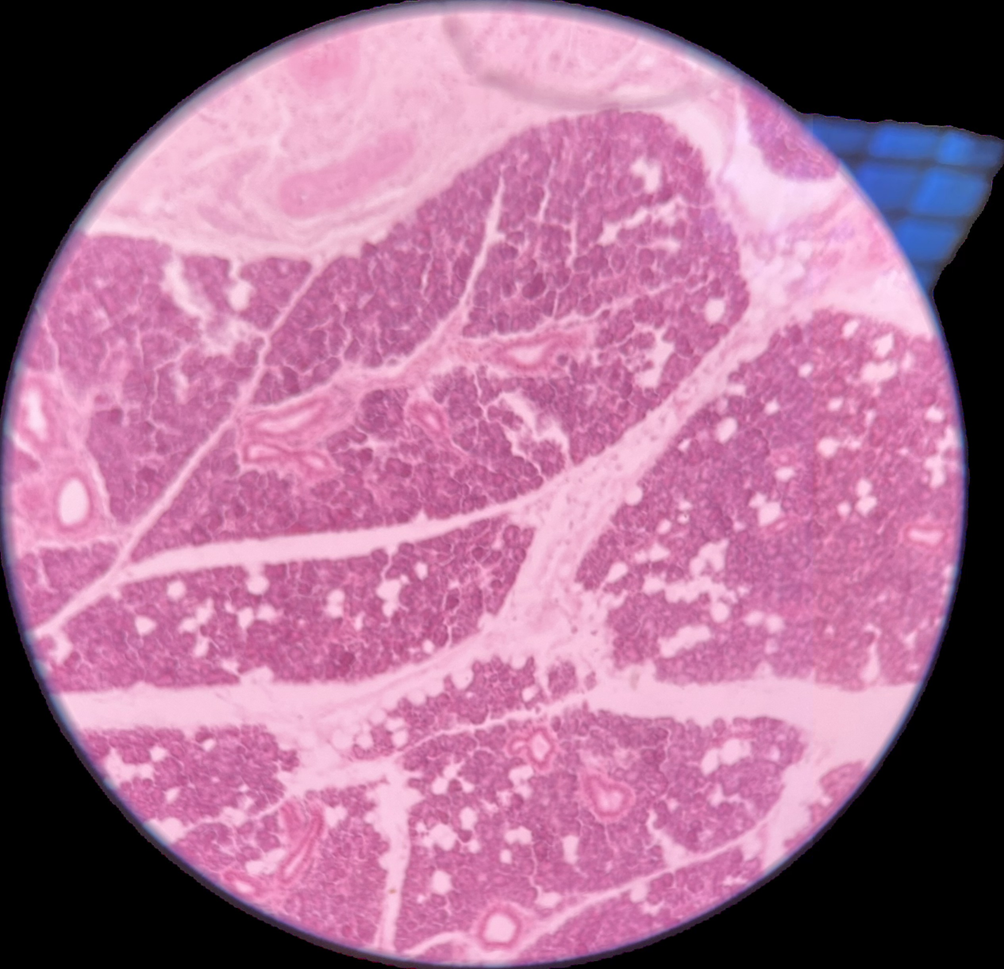 Glandula parotis (H&E), lumen, senseru sectretory cells