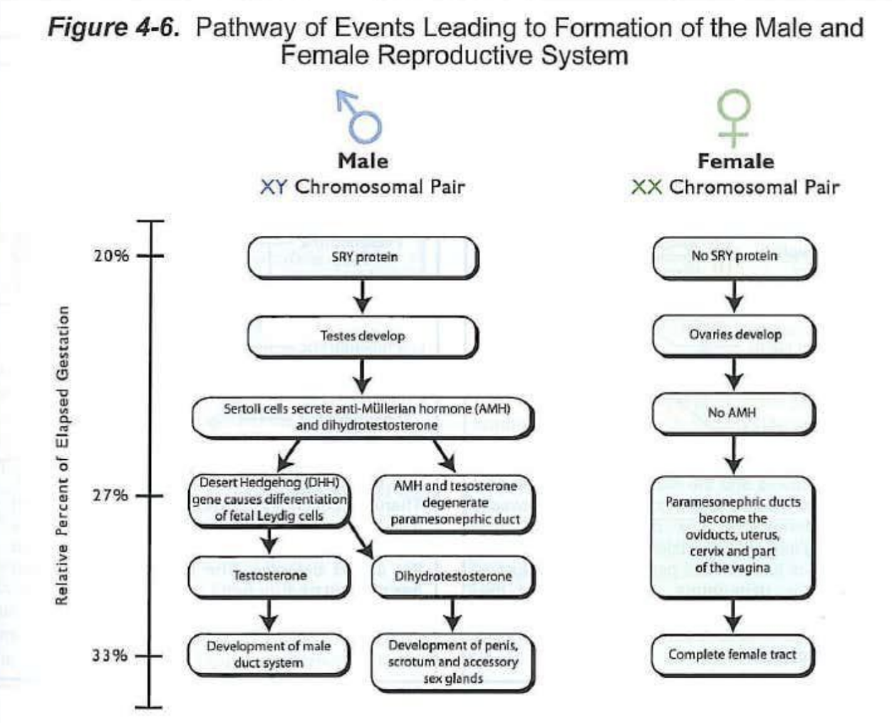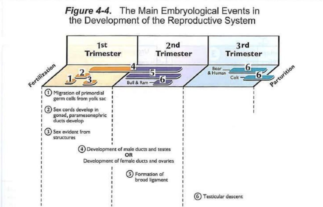 reproductive system: gonads (male and female), uterus, cervix, part of vagina, epididymis, ductus deferens, accessory sex glands