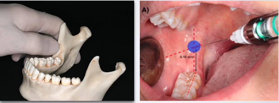INCORRECT technique (standard/classic technique for inferior alveolar nerve block)