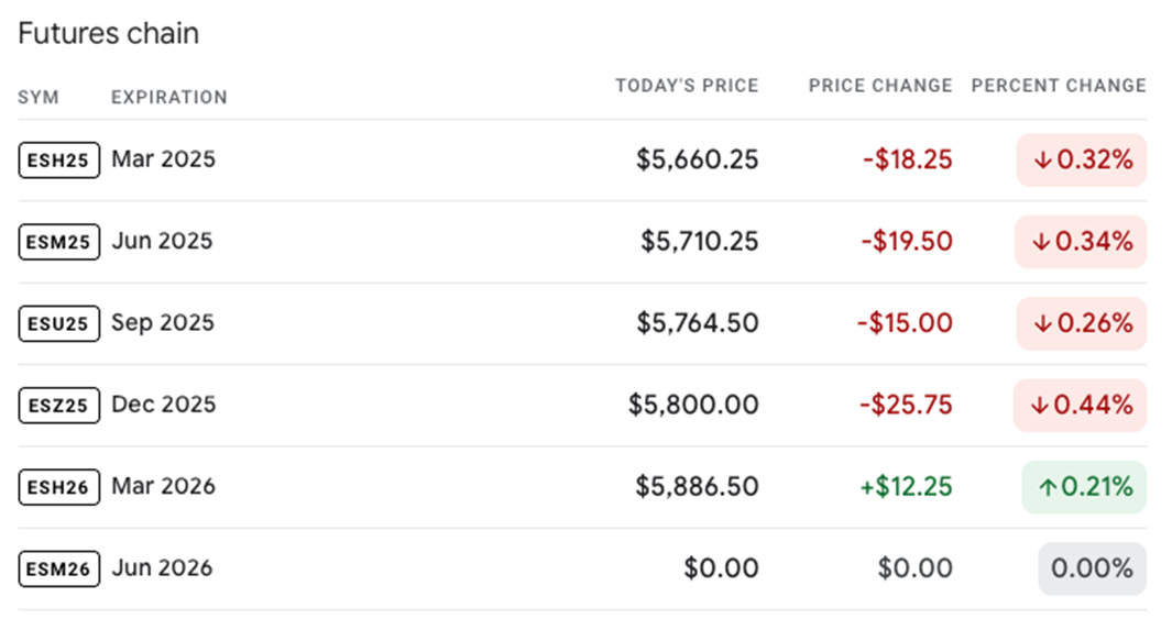 For example, the spot price of the S&P 500 is $5,660.25, and maturities, starting with the March expiry, are priced as follows: