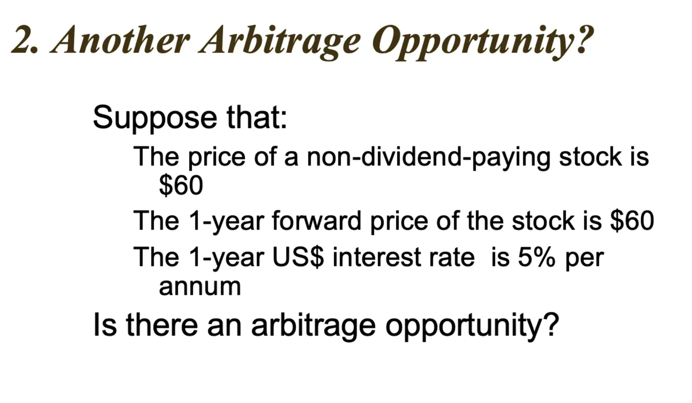 Fair forward price: F = S*e^(rT) = $60*e^(0.05x1) = $63.08