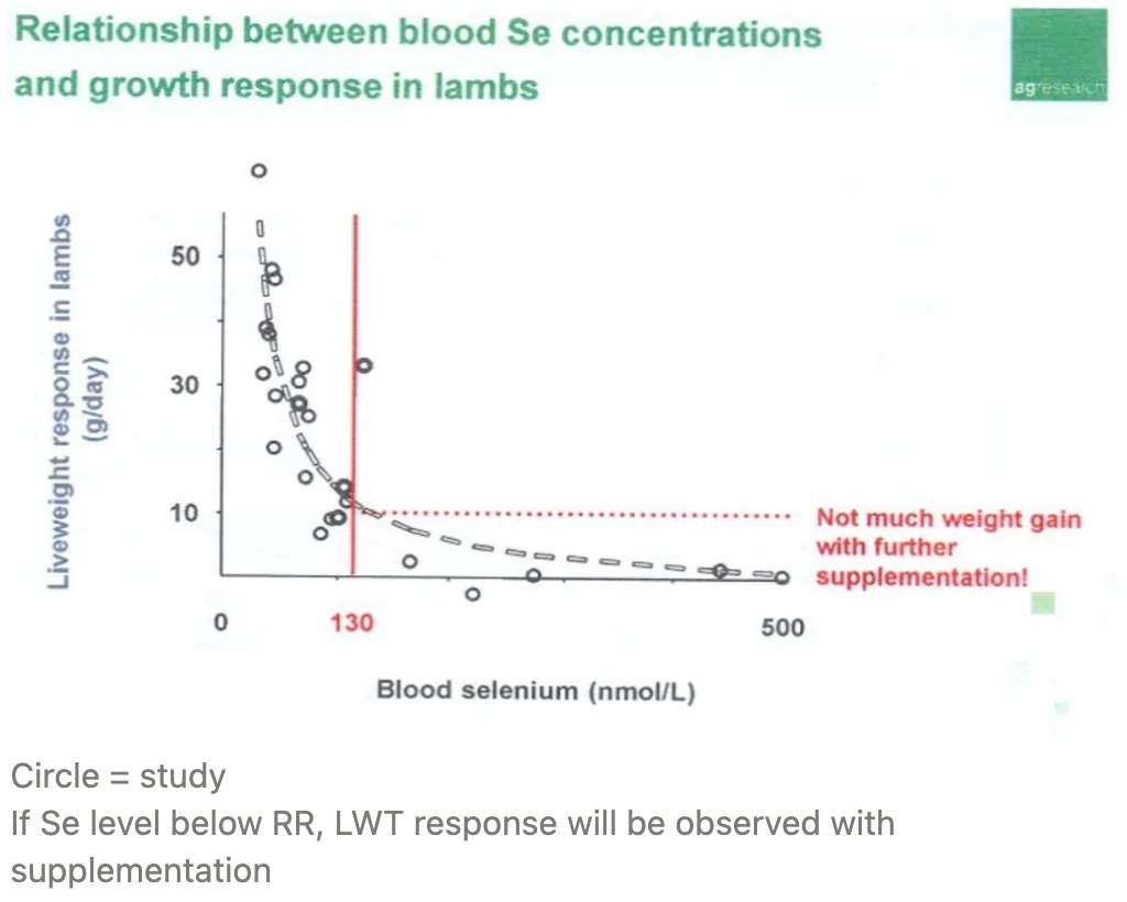 GPx levels are well into the adequate range and rules-out selenium deficiency as being a contributor to the poor growth rates in these ewe hoggets, at least over the past couple of months. The hoggets have been getting drenched every 28 days with mineralised anthelmintic which will raise their Se levels so we can't extrapolate these results to other livestock on the farm (except for those that have also been getting regularly drenched with mineralised anthelmintic).